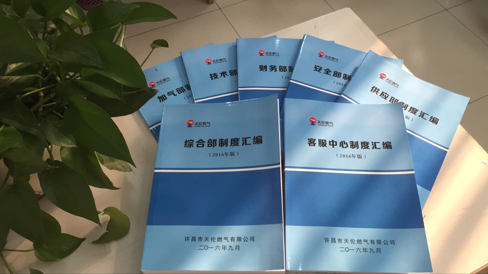 為了規(guī)范日常管理行為,加強(qiáng)制度執(zhí)行力度,做到有章可循有制可依。2016年5月下旬,許昌公司發(fā)起了制度大疏理活動(dòng),各部門對(duì)內(nèi)部日常執(zhí)行制度、操作流程、規(guī)范、細(xì)則等進(jìn)行了整理、細(xì)化、修訂,并按照統(tǒng)一的排版、排序等要求進(jìn)行了匯總歸集,通過數(shù)月對(duì)各部門制度內(nèi)容的規(guī)范、整理、核準(zhǔn);多次反復(fù)修訂精簡(jiǎn),形成了以部門為單位的制度匯編手冊(cè),并設(shè)計(jì)了精美的封面,于2016年9月19日正式下發(fā)至各部門。