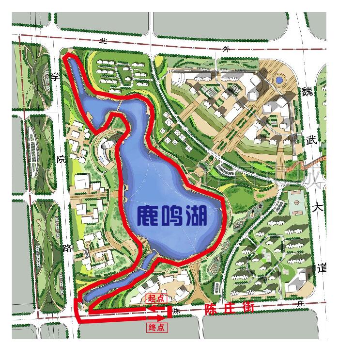 活動路線:陳莊街→鹿鳴湖西南門→沿湖體育步道→鹿鳴湖西南門→陳莊街