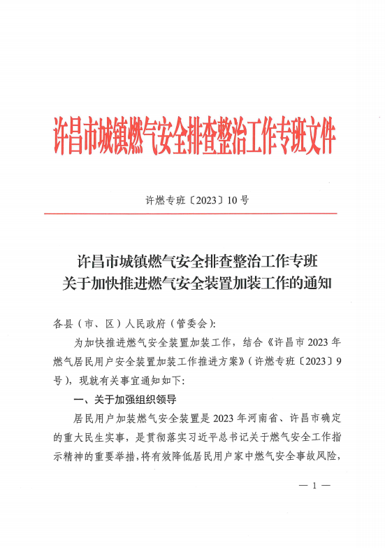 關(guān)于加快推進(jìn)燃?xì)獍踩b置加裝工作的通知 許燃專班〔2023〕10號