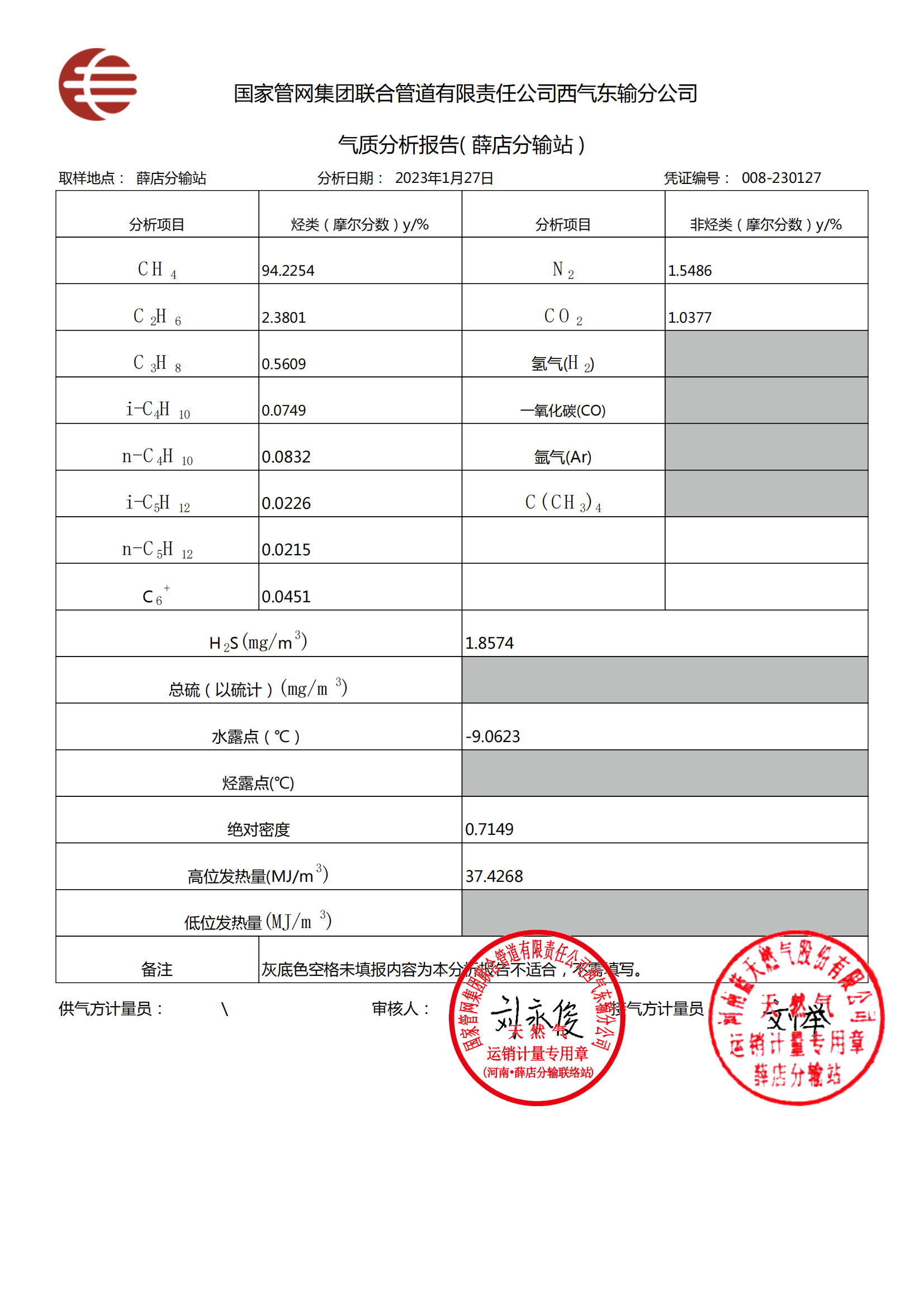 2023年一季度氣質檢測報告